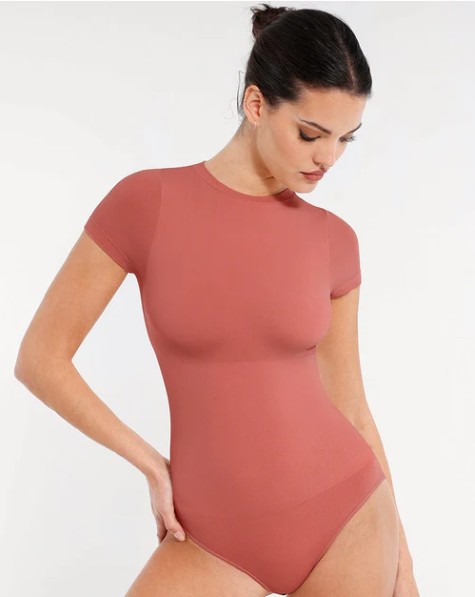Seamless Waist-Slimming Short-Sleeve Bodysuit with Hip Briefs